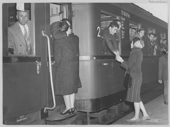 © Italienische „Gastarbeiter“ im Hauptbahnhof, 1961 (ISG